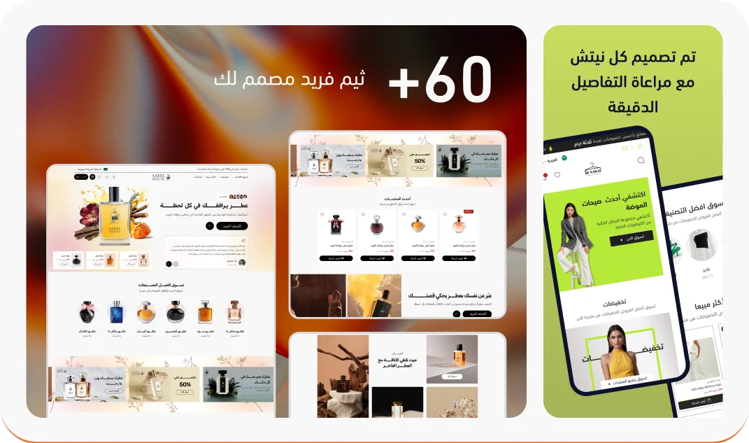 نتولى عنك كافة التفاصيل التشغيلية والتقنية لننشئ لك متجر الكتروني متكامل على منصة سلة أو زد، مجهزاً بكافة الإعدادات البرمجية والجمالية لتبدأ رحلة مبيعاتك من اليوم الأول.